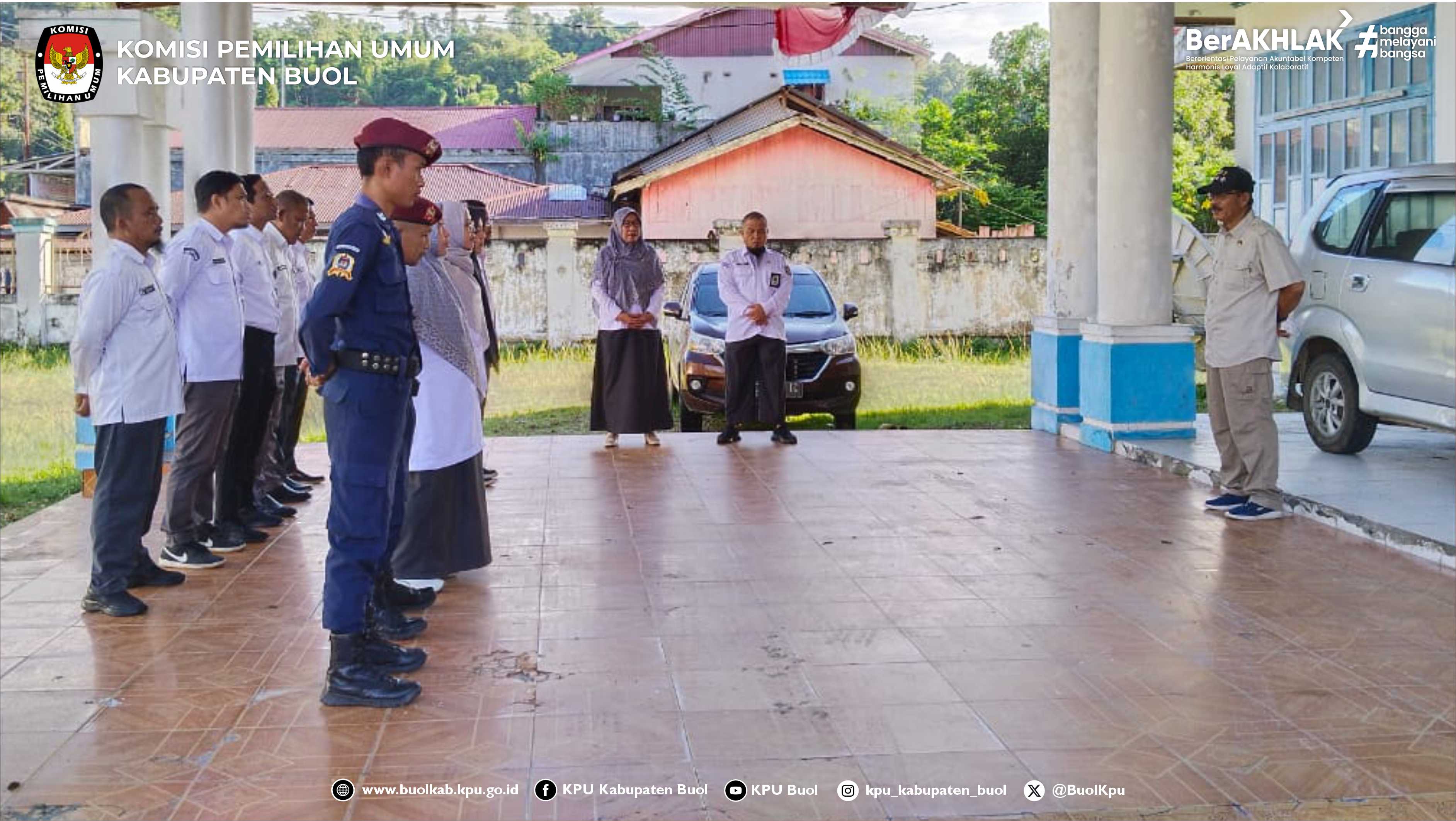 Bertindak sebagai pembina apel, Anggota KPU Kabupaten Buol, Gusti Aliu, menyampaikan sejumlah pesan penting yang menekankan kedisiplinan, peningkatan etos kerja, serta menjaga integritas dan citra kelembagaan.
