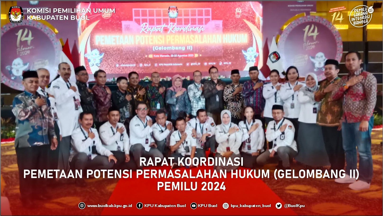Manado kab-buol.kpu.go.id – Anggota KPU kabupaten Buol divisi hukum dan pengawasan Ali, mengikuti Rapat Koordinasi Pemetaan Potensi Permasalahan Hukum, Gelombang II, di Kota Manado, Provinsi Sulawesi Utara, Senin (28/08/2023).