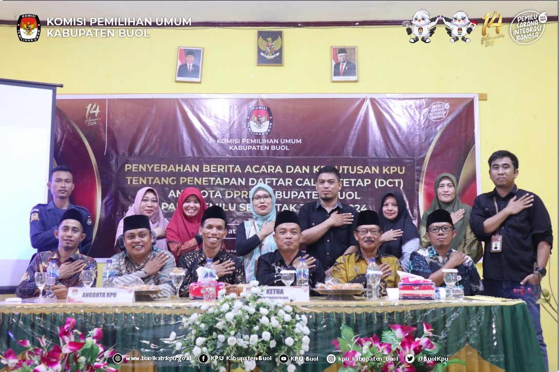 Peserta terdiri dari Anggota KPU Provinsi dan Kabupaten/Kota yang membidangi Divisi Teknis Penyelenggaraan dan Divisi Sosialisasi Pendidikan Pemilih Partisipasi Masyarakat dan SDM, beserta Kabag/Kasubbag yang membidangi Teknis Penyelenggaraan Pemilu, serta Operator Sikadeka. Adapun KPU Kabupaten Buol diwakili oleh Eko Budiman selaku Ketua Divisi teknis penyelenggaran, dan Faisal J. Usman selaku ketua Divisi Sosialisasi Pendidikan Pemilih Partisipasi Masyarakat dan SDM, serta Operator SIKADEKA Muhammat Pebriansah. Selanjutnya, kegiatan ditutup secara resmi oleh Kepala Biro Teknis Penyelenggaraan Pemilu Melgia Carolina Van Harling. (humas kpubuol fm/foto rm/ed sy)