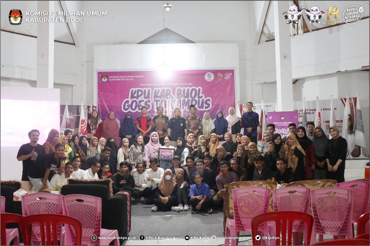 Buol kab-buol.kpu.go.id - Memperingati hari sumpah pemuda ke 95, KPU Kabupaten Buol menggelar KPU Goes To Campus nonton bareng (NoBar) Film Pemilu "Kejarlah Janji" pada Sabtu, 28/10/2023.